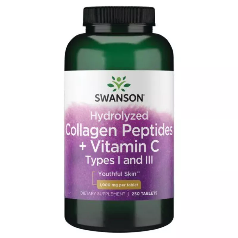Swanson Hydrolizowany kolagen I i III + C to suplement diety, który dostarcza organizmowi najwyższej jakości kolagen oraz witaminę C. Idealny dla osób, które chcą wspierać zdrowie skóry, stawów i kości.