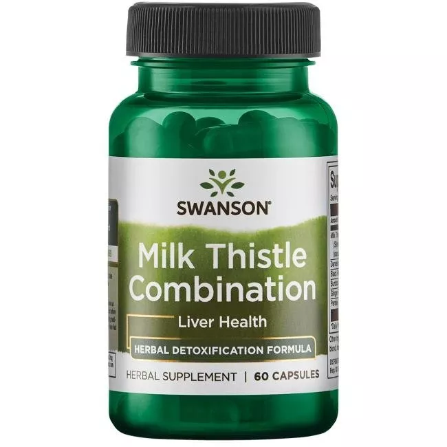 Swanson Milk Thistle Combination to suplement diety zawierający unikalną mieszankę naturalnych ekstraktów ziołowych, zaprojektowaną w celu wspierania zdrowia wątroby i ogólnego samopoczucia. Produkt łączy w sobie dobrodziejstwa ostropestu plamistego, mniszka lekarskiego, rzodkwi czarnej, łopianu większego, imbiru lekarskiego oraz pietruszki zwyczajnej.