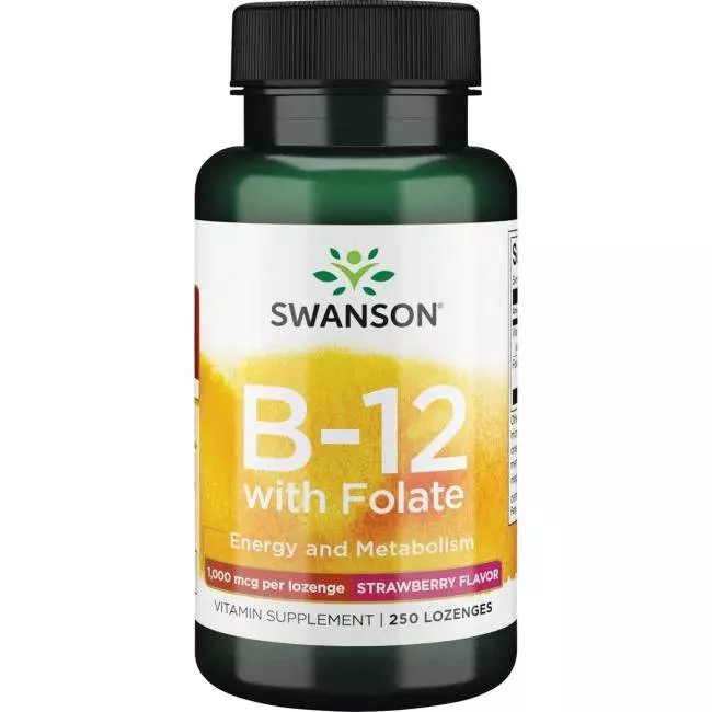 Swanson Witamina B-12 1000mcg to wysokiej jakości suplement diety w formie tabletek do ssania o pysznym truskawkowym smaku. Każda tabletka dostarcza znaczną dawkę witaminy B-12, niezbędnej do prawidłowego funkcjonowania organizmu.