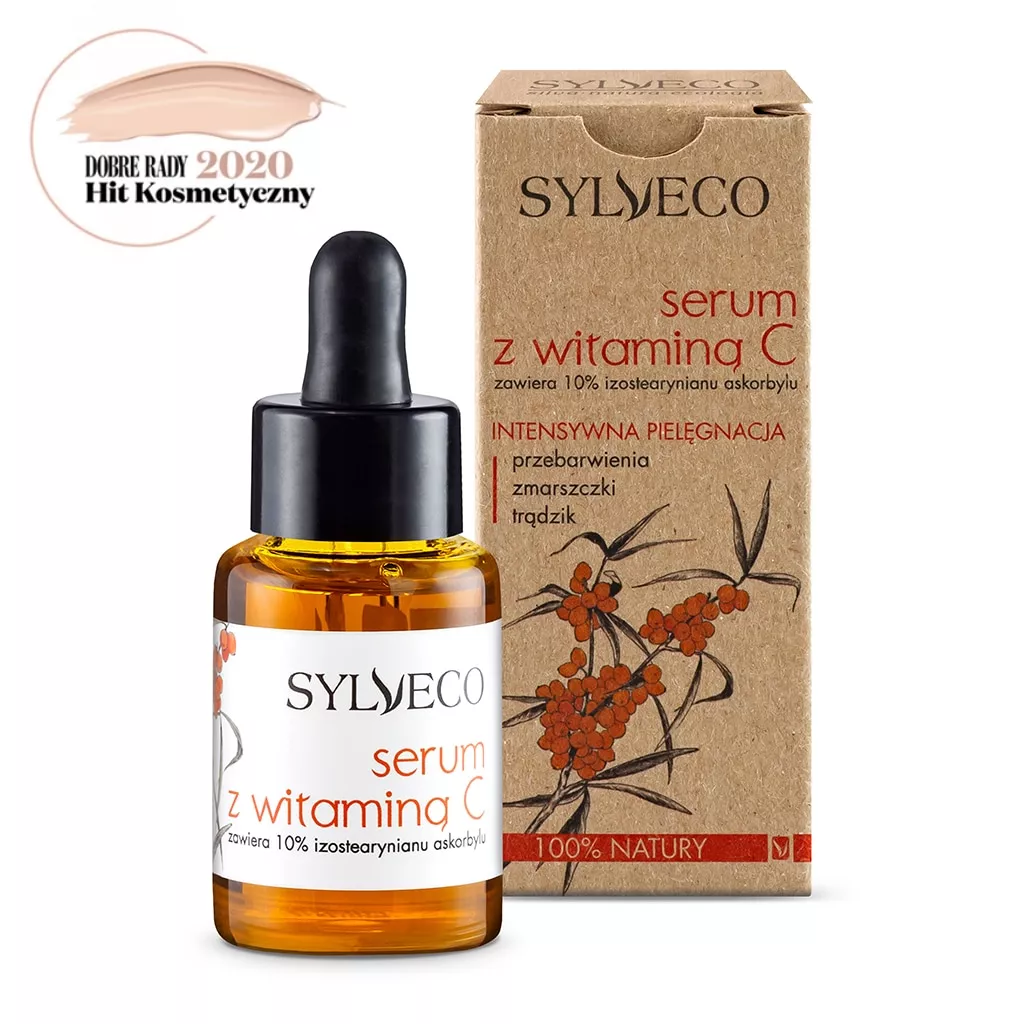Odkryj rozjaśniające serum do twarzy Sylveco z witaminą C, które dzięki wysokim stężeniom aktywnych składników skutecznie redukuje proces starzenia się skóry. To innowacyjne serum chroni przed działaniem niekorzystnych czynników zewnętrznych, takich jak stres, zanieczyszczenia środowiska i dym tytoniowy, a także przed skutkami promieniowania UV. Zawiera aż 10% stabilnej postaci witaminy C, pochodnej izostearynianu askorbylu, która rozjaśnia cerę, wyrównuje koloryt i regeneruje skórę, przywracając jej zdrowy, piękny blask oraz witalność. Po zastosowaniu serum cera jest zauważalnie nawilżona, odżywiona i ujędrniona dzięki kompozycji wyjątkowych roślinnych składników.