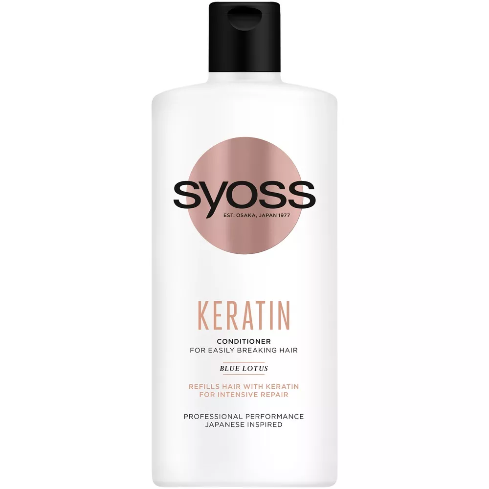 Syoss Keratin Conditioner to odżywka stworzona specjalnie dla osób z włosami słabymi i łamliwymi. Dzięki unikalnej formule z kompleksem aminokwasów i ekstraktem z kwiatu błękitnego lotosu, produkt uzupełnia strukturę włosów o keratynę, zapewniając intensywną regenerację i wygładzenie włókien włosów.