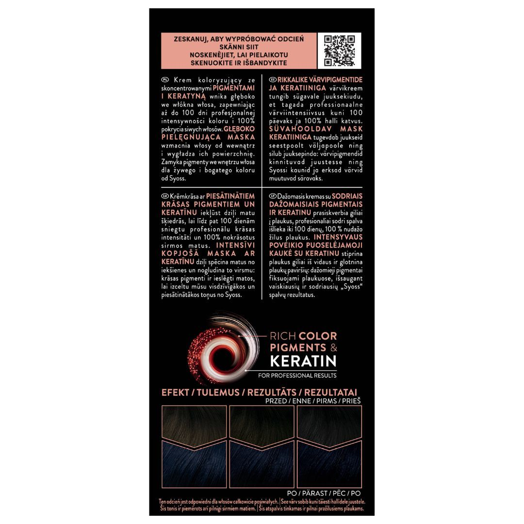 Szukasz intensywnego, długotrwałego koloru i pełnego pokrycia siwych włosów? Farba do włosów Syoss Permanent Coloration zapewni Ci profesjonalny efekt koloryzacji jak z salonu fryzjerskiego. Trwała koloryzacja Syoss z systemem Przeciw Uszkodzeniom, dzięki połączeniu technologii SalonPlex i keratyny, nada Twoim włosom żywe i elektryzujące kolory o długotrwałej intensywności oraz ochroni Twoje włosy przed uszkodzeniami.