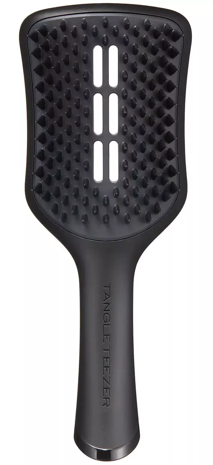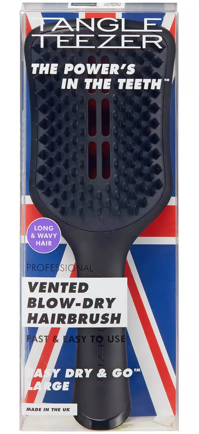 Wentylowana szczotka do włosów Tangle Teezer Easy Dry&Go jest niezastąpiona w suszeniu włosów. Szczotka posiada właściwości przyspieszające suszenie włosów i ograniczające puszenie się pasm. Pasma są głakie, pełne objętości i ładnie się układają. Szczotka posiada opatentowane ząbki z tworzywa syntetycznego i opracowany kształt po to, żeby suszenie było jeszcze szybsze, a włosy gładsze. Szczotka nadaje się do recycylingu.