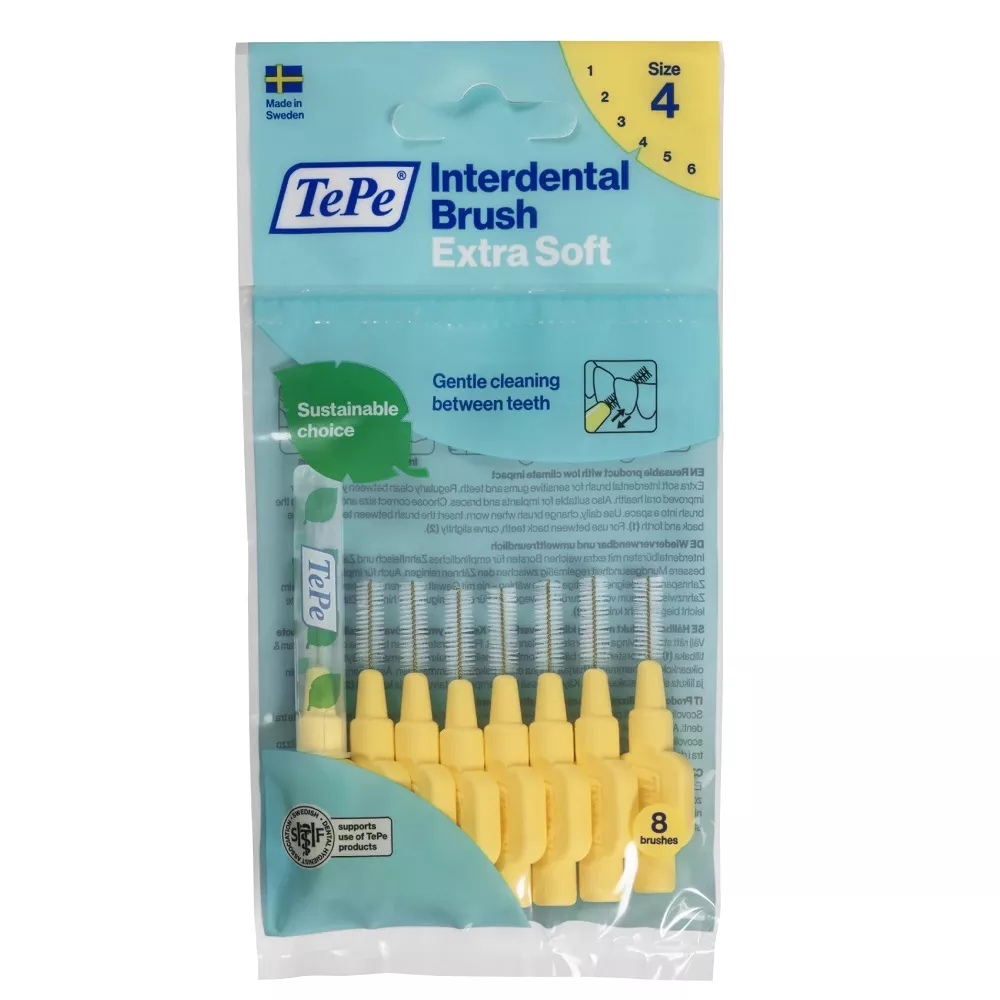 TePe Extra Soft szczoteczki do przestrzeni międzyzębowych 0.7mm Jasnożółte to unikalne szwedzkie szczoteczki zaprojektowane z ekstra delikatnymi włóknami, idealne do bardzo delikatnego czyszczenia przestrzeni międzyzębowych.