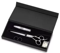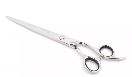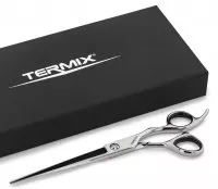 Nożyczki barberskie Termix Barber to narzędzia trwałe, precyzyjne i komfortowe w użytkowaniu. Wyprodukowano je z wysokiej jakości stali nierdzewnej, odpornej na korozję i tępienie. Nożyczki wykonano w taki sposób, żeby zmniejszyć opór do minimum. Dzięki temu dłoń nie męczy się podczas pracy. Ostrza są wypukłe i precyzyjne, nie tępią się. Są to nożyczki offset. Nożyczki Termix są lekkie i ergonomiczne. Dla lepszej równowagi i komfortu zastosowano podpórkę na place, przesunięto też nieco oczka.