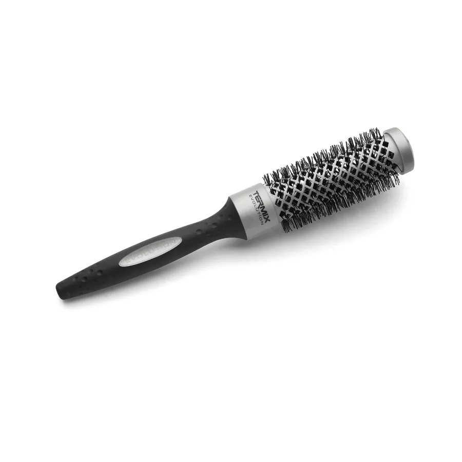 Jeśli marzy Ci się jeszcze krótsze suszenie włosów sięgnij koniecznie po okrągłą szczotkę Termix Evolution Basic. Szczotka ta powstała z myślą o włosach normalnych i została wykonana z teflonu, dlatego też jest gwarancją wysokiej jakości! Dzięki swojej unikalnej budowie redukuje czas suszenia nawet do 30%! Wyróżnia się ergonomicznym, specjalnie zaprojektowanym kształtem rączki, dzięki temu świetnie się ich używa mając mokre ręce. Szczotka zapewnia pewny i mocny chwyt. Ponadto szczotki tej firmy posiadają nieprzywierającą powierzchnię, która chroni przed przylepianiem się i gromadzeniem niepotrzebnych substancji. Doskonale sprawdzi się w codziennej stylizacji pasm.