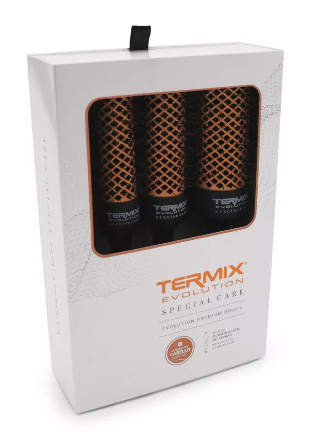 Szczotki do włosów Termix Evolution Special Care zostały zaprojektowane z myślą o włosach cienkich i niezwykle delikatnych. Każdy szczegół w tych szczotkach został tak przemyślany, żeby nie osłabiać i nie niszczyć delikatnych włosów. Włókna szczotek Special Care doskonale chwytają włosy, nie powodując przy tym uszkodzeń ich struktury. Szczotki wykonane zostały z teflonu, który doskonale rozprowadza ciepło i skraca czas suszenia nawet o 30% w stosunku do szczotek aluminiowych. Uchwyt jest ergonomiczny i antypoślizgowy. W zestawie cztery szczotki o następujących średnicach: 23mm, 28mm, 32mm, 43mm.
