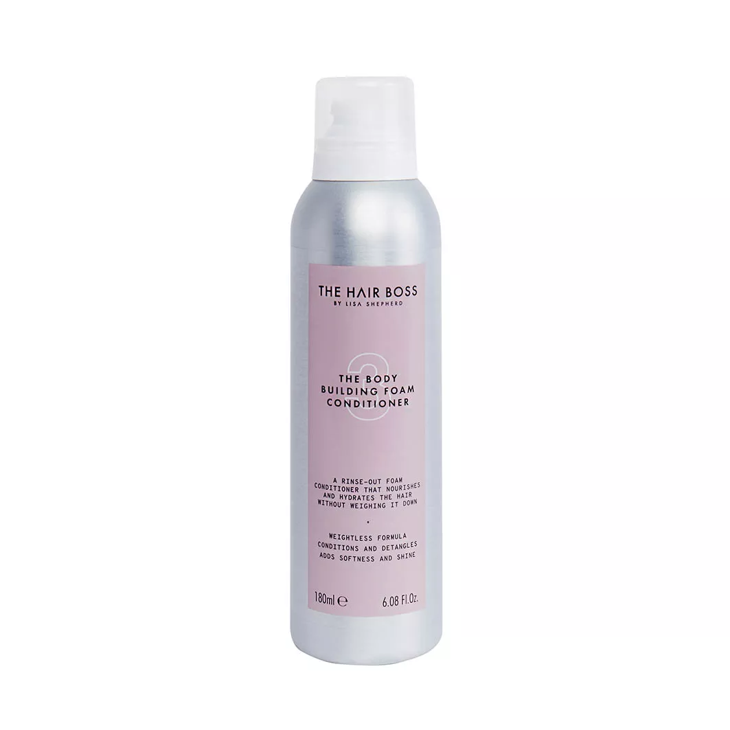 The Hair Boss The Body Building Foam Conditioner to wegańska odżywka w piance, idealna dla włosów pozbawionych objętości. Jej lekka formuła unosząca włosy została wzbogacona o masło Shea i olejek arganowy, które wzmacniają włosy, przywracając im miękkość i połysk, nie obciążając ich.