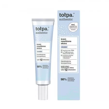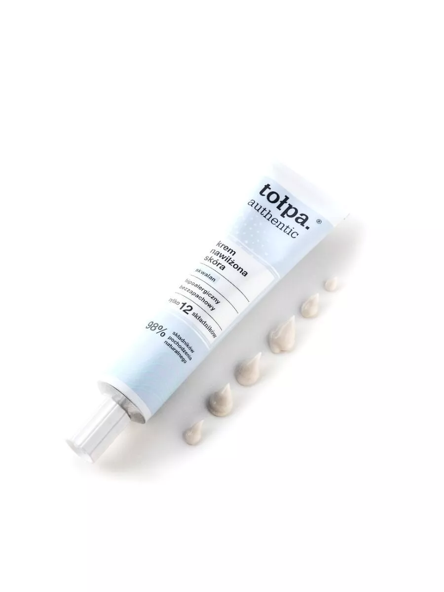 Tołpa Authentic, krem nawilżona skóra to ratunek dla odwodnionej i spragnionej skóry twarzy. Innowacyjna formuła oparta na czystych molekułach skwalanu zapewnia intensywne nawilżenie aż do 72 godzin oraz wspiera regenerację naskórka. Już po 7 dniach regularnego stosowania krem poprawia elastyczność oraz przywraca skórze gładkość. Lekka, szybko wchłaniająca się konsystencja nie obciąża i nie powoduje błyszczenia, jednocześnie odbudowując warstwę hydrolipidową. Kosmetyk chroni przed utratą wody, wspiera mikrobiom, łagodzi podrażnienia i nie zaburza naturalnego pH skóry.
