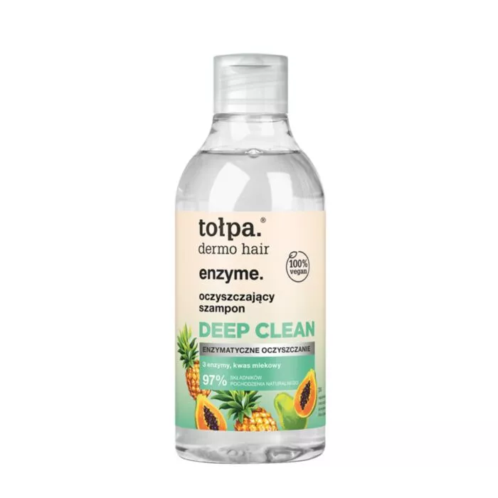 Tołpa Dermo Hair Enzyme oczyszczający szampon deep clean to innowacyjny produkt do pielęgnacji włosów i skóry głowy, który zapewnia głębokie oczyszczenie już po pierwszym użyciu. Dzięki skoncentrowanej formule opartej na enzymach oraz kwasie mlekowym, skutecznie usuwa zanieczyszczenia, nadmiar sebum oraz pozostałości środków do stylizacji, przywracając włosom świeżość i lekkość. Szampon jest odpowiedni także dla osób z włosami farbowanymi, dbając o ich kondycję i kolor.