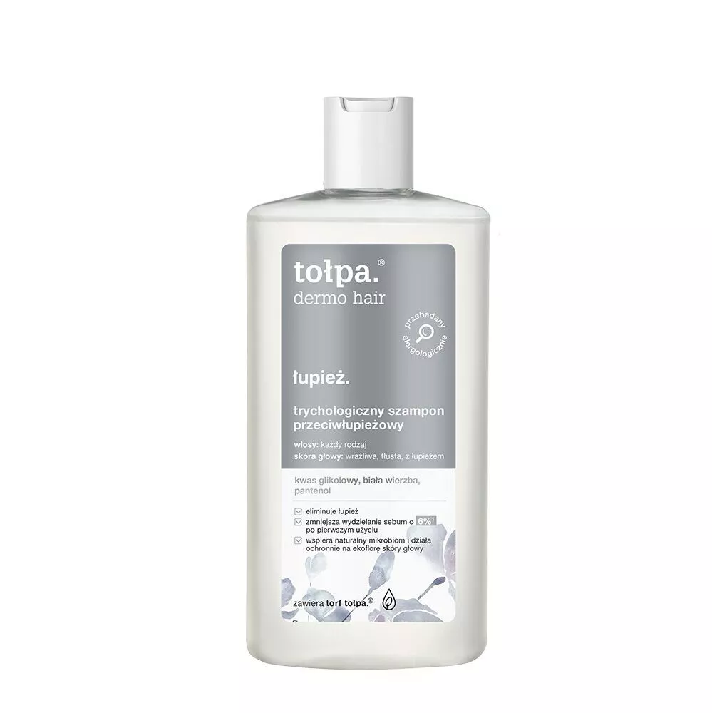 Tołpa Dermo Hair, łupież trychologiczny szampon przeciwłupieżowy to specjalistyczny kosmetyk przeznaczony do kompleksowej pielęgnacji skóry głowy i włosów z problemem łupieżu. Skutecznie usuwa łupież, nadmiar sebum, zanieczyszczenia oraz pozostałości po środkach do stylizacji. Szampon nie tylko eliminuje widoczne objawy łupieżu, ale również działa u podstaw problemu – przywraca równowagę mikrobiomu skóry głowy, promując rozwój pozytywnych bakterii i hamując namnażanie tych odpowiedzialnych za powstawanie łupieżu. Zmniejsza wydzielanie sebum, łagodzi swędzenie, przywraca komfort i zapewnia długotrwałe uczucie świeżości. Nawilża włosy, nadaje im gładkość, połysk i elastyczność. Jest bezpieczny dla włosów farbowanych oraz po zabiegach fryzjerskich, a także przynosi ulgę podrażnionej skórze głowy.
