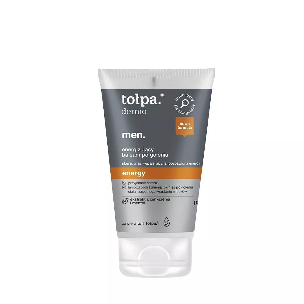 Tołpa Dermo Men energy to energizujący balsam po goleniu stworzony z myślą o aktywnych mężczyznach, również tych uprawiających sport. Idealnie sprawdzi się nie tylko po goleniu twarzy, ale także ciała. Szybko łagodzi podrażnienia i zaczerwienienia, przyjemnie chłodzi skórę, obniżając jej temperaturę tuż po aplikacji – działa niczym kostka lodu*. Produkt skutecznie zapobiega wrastaniu włosków, intensywnie nawilża i przywraca skórze witalność, usuwając oznaki zmęczenia i nadając jej zdrowy, wypoczęty wygląd.