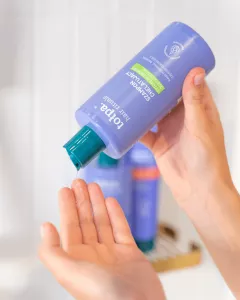- Nanieś szampon na dłoń i rozprowadź na wilgotnej skórze głowy.