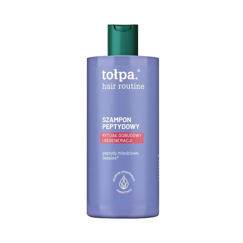Tołpa Hair routine, szampon peptydowy do włosów 300ml to innowacyjny kosmetyk, który łączy rytuał oczyszczenia z intensywną odbudową i regeneracją. Delikatnie, lecz skutecznie myje skórę głowy oraz włosy, eliminując resztki produktów do stylizacji, zanieczyszczenia oraz osady mineralne pochodzące z wody. Szampon koi podrażnienia, zapewnia intensywne nawilżenie, wzmacnia strukturę włosów i chroni je przed łamliwością oraz kruchością. Redukuje problem rozdwojonych końcówek, a także nadaje pasmom miękkość, połysk i jedwabistą gładkość, wyraźnie poprawiając wygląd i kondycję włosów.