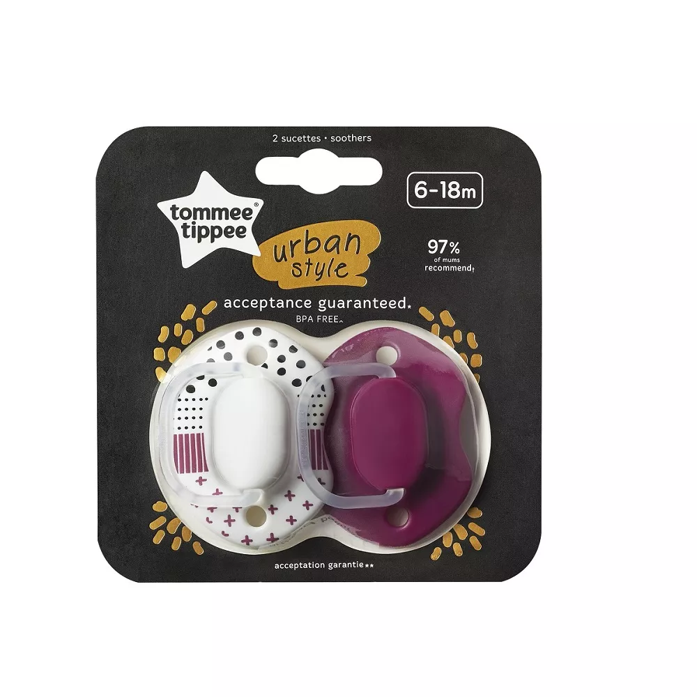 Odkryj wyjątkowe i opatentowane smoczki uspokajające Tommee Tippee Urban, stworzone we współpracy z ekspertami w dziedzinie stomatologii. Zaprojektowane specjalnie, aby delikatnie rozszerzać się w buzi dziecka, wspomagają właściwe ukształtowanie podniebienia oraz prawidłowy rozwój jamy ustnej. Produkt jest idealny dla dzieci w wieku od 6 do 18 miesięcy.