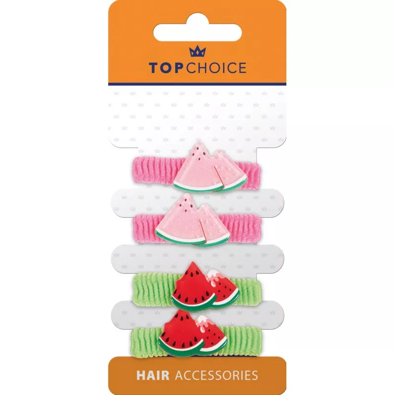 Odkryj kolorowy świat z elastycznymi frotkami do włosów Top Choice 22975, stworzonymi specjalnie dla dzieci. W zestawie znajdują się cztery urocze frotki w pięknych kolorach różowym i limonkowym, każda ozdobiona delikatnym akcentem, który dodaje uroku każdej fryzurze.