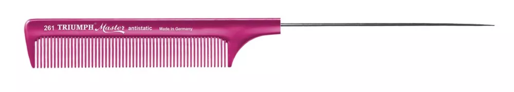 Wysokiej jakości grzebień do włosów Triumph Master 261 firmy Hercules Sagemann. Grzebień ten wykonany jest techniką bezzgrzewową, powierzchnia pozbawiona jest jakichkolwiek porów dzięki czemu jest on bardzo higieniczny, antybakteryjny i odporny na działanie wszelkich chemikaliów. Ząbki grzebienia są dodatkowo polerowane aby nie szarpały i nie naruszały struktury włosa. Wykonany z materiału termicznego odpornego na działanie wysokich temperatur. Posiada stalowy szpikulec.