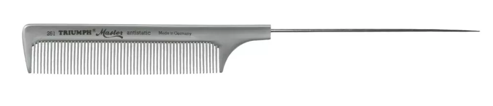 Wysokiej jakości grzebień do włosów Triumph Master 261 firmy Hercules Sagemann. Grzebień ten wykonany jest techniką bezzgrzewową, powierzchnia pozbawiona jest jakichkolwiek porów dzięki czemu jest on bardzo higieniczny, antybakteryjny i odporny na działanie wszelkich chemikaliów. Ząbki grzebienia są dodatkowo polerowane aby nie szarpały i nie naruszały struktury włosa. Wykonany z materiału termicznego odpornego na działanie wysokich temperatur. Posiada stalowy szpikulec.