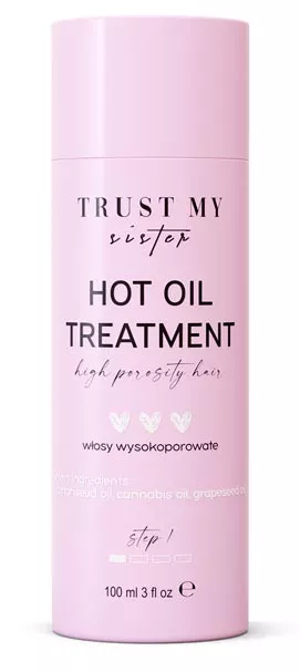 Olej do włosów wysokoporowatych Trust My Sister intensywnie nawilża i regeneruje zniszczone kosmyki oraz otacza opieką, zapewniając ochronę przed uszkodzeniami oraz szkodliwym działaniem czynników zewnętrznych. Sprawia, że kruche, łamliwe pasma odzyskują elastyczność i stają się pełne blasku oraz bardziej podatne na układanie. Wyselekcjonowana kompozycja olejów z nasion bawełny, pestek winogron, konopi siewnej oraz soi domyka łuski, zapewniając intensywne nawilżenie oraz barierę ochronną włosów o wysokiej porowatości.