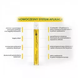1 ampułka to 2 aplikacje. Dziennie należy stosować pół apułki. Połową zawartości spryskaj skórę głowy, jednocześnie rozgniatając skórę głowy w miejscu aplikacji. Wmasowuj prosukt w skórę głowy przez około 1-2 min. NIe spłukuj. Po zastosowaniu może wystąpić uczcie mrowienia i rozgrzewania. Są to oznaki pobudzenia krążenia.
