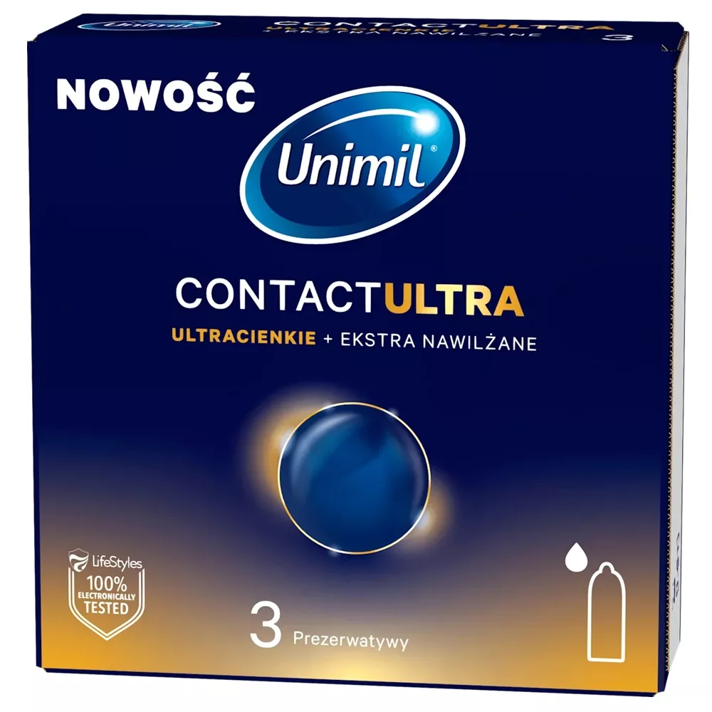 Unimil Contact Ultra to ultracienkie i mocno nawilżane prezerwatywy, zaprojektowane z myślą o intensywnych doznaniach. Te najcieńsze prezerwatywy Unimil korzystają z technologii TOUCH, a każda z nich jest w 100% testowana elektronicznie, co zapewnia najwyższą jakość i bezpieczeństwo. Idealne do stosowania zarówno podczas seksu waginalnego, jak i analnego, a przy tym w pełni kompatybilne z żelami nawilżającymi Unimil na bazie wody lub silikonu.