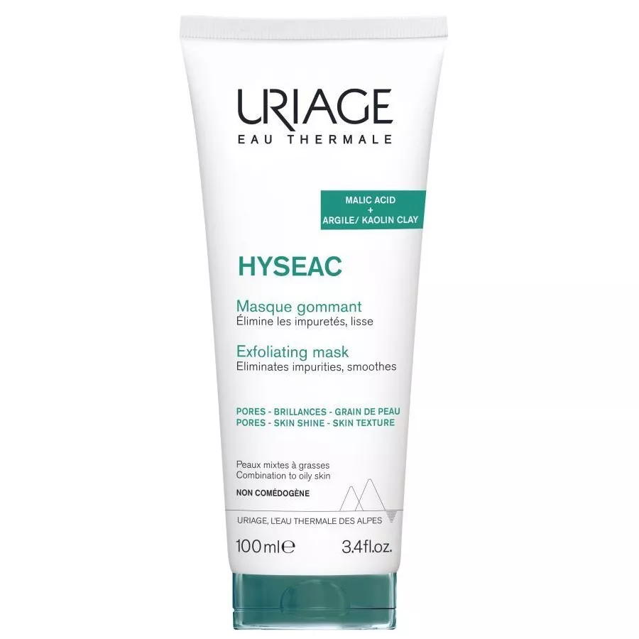 Uriage Hyseac złuszczająca maska do twarzy 100ml łączy skuteczność wchłaniania maski i działanie złuszczające peelingu w jednym produkcie! Dzięki mikrogranulkom, użytkowanie produktu jest przyjemne i delikatne dla skóry.