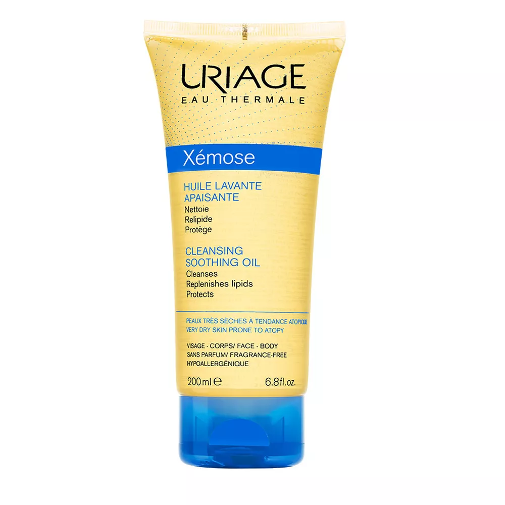 Uriage Xemose Cleansing Soothing Oil to oczyszczający olejek pod prysznic i do kąpieli, który chroni skórę przed wysuszeniem i łagodzi uczucie swędzenia. Jego lekka, delikatna piana zapewnia natychmiastowy i długotrwały komfort dla suchej i bardzo suchej skóry.