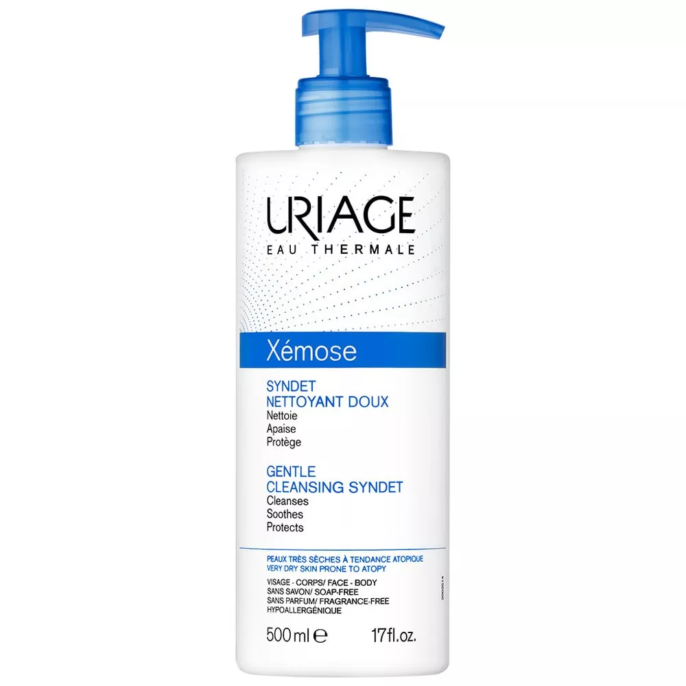 Uriage Xémose Gentle Cleansing Syndet to delikatny krem-żel do mycia, stworzony specjalnie z myślą o bardzo suchej skórze ze skłonnością do atopii. Dzięki unikalnemu połączeniu opatentowanego kompleksu Cerasterol-2F z wodą termalną Uriage, produkt skutecznie oczyszcza, koi i wspiera funkcję barierową skóry. Zapewnia długotrwałe ukojenie nawet najbardziej suchej skórze.