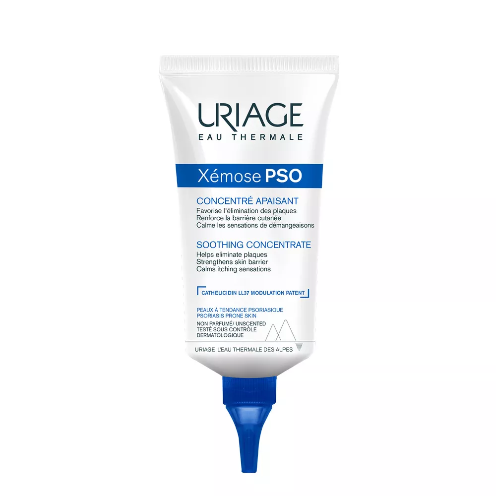 Uriage Xemose PSO Koący Koncentrat to rewolucyjny produkt stworzony z myślą o skórze skłonnej do łuszczycy. Dzięki opatentowanemu mechanizmowi działania oraz 96% składników pochodzenia naturalnego, koncentrat skutecznie łagodzi uczucie swędzenia i wzmacnia barierę skórną. Zawiera wodę termalną Uriage oraz dwa unikalne patenty dermatologiczne.