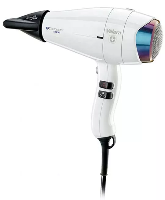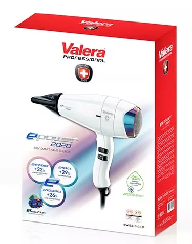 Profesjonalna suszarka do włosów Valera e-Power 2020 to rozwiązanie ekologiczne i niezwykle wydajne. Suszarka do włosów Valera posiada bezszczotkowy cyfrowy i specjalny generator jonów, dzięki czemu włosy po suszeniu są miękkie, gładkie i lśniące. Urządzenie pozwala na dostosowanie parametrów działania do typu włosów i potrzeb. Ponadto przycisk zimnego powietrza jest idealny do zakończenia stylizacji. Dla bezpieczeństwa zastosowano tylny wyjmowany filtr powietrza, co pozwala na łatwe czyszczenie urządzenia. Do suszarki dołączono dwie dysze koncentrujące powietrze oraz dyfuzor.