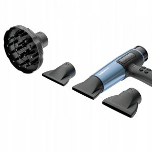 Bogaty zestaw końcówek ? dwie precyzyjne, chłodząca Touch Me oraz dyfuzor do loków.