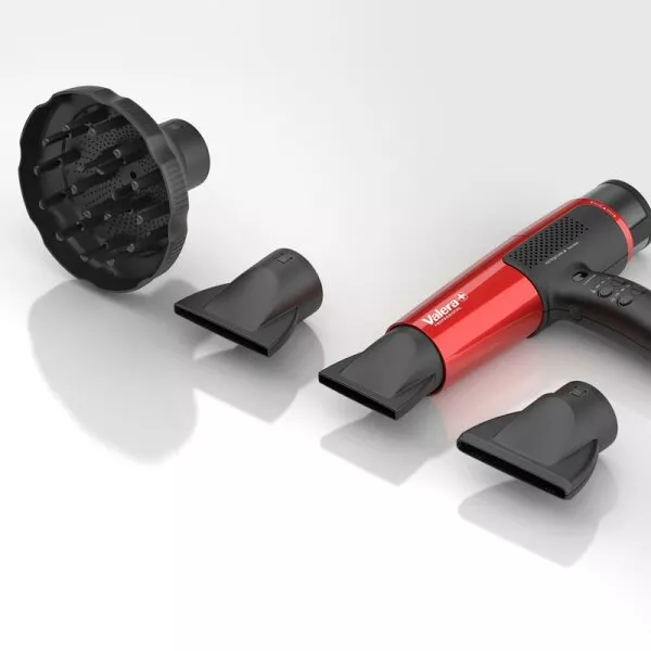 Valera MatrixCare AI Metallic Red to zaawansowana technologicznie suszarka do włosów, stworzona z myślą o profesjonalistach, którzy cenią sobie jakość i wydajność. Dzięki ultralekkiemu designowi i potężnemu cyfrowemu silnikowi, który osiąga aż 100 000 obr./min, suszarka zapewnia niezwykle szybkie suszenie i precyzyjną stylizację, pozostając przy tym wyjątkowo cicha - tylko 67 dB(A).