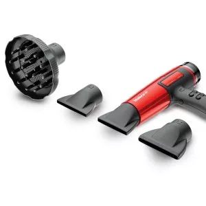 4 akcesoria: 2 precyzyjne dysze (szerokość 6,2 i 7,5 cm), dysza chłodząca TOUCH ME (szerokość 8,2 cm), dyfuzor loków (ø 12,7 cm)