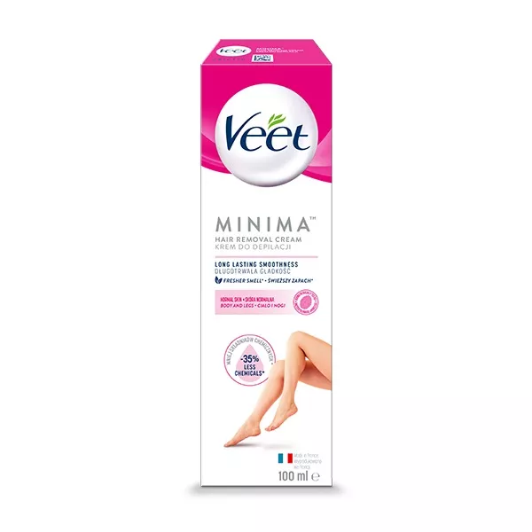 Veet Minima krem do depilacji ciała dla skóry normalnej to idealne rozwiązanie dla osób pragnących jedwabiście gładkiej skóry. Krem zapewnia nie tylko efektywne usuwanie włosów, ale także długotrwałe nawilżenie, które utrzymuje się do 24 godzin. Dzięki przyjemnemu zapachowi, korzystanie z kremu jest prawdziwą przyjemnością.