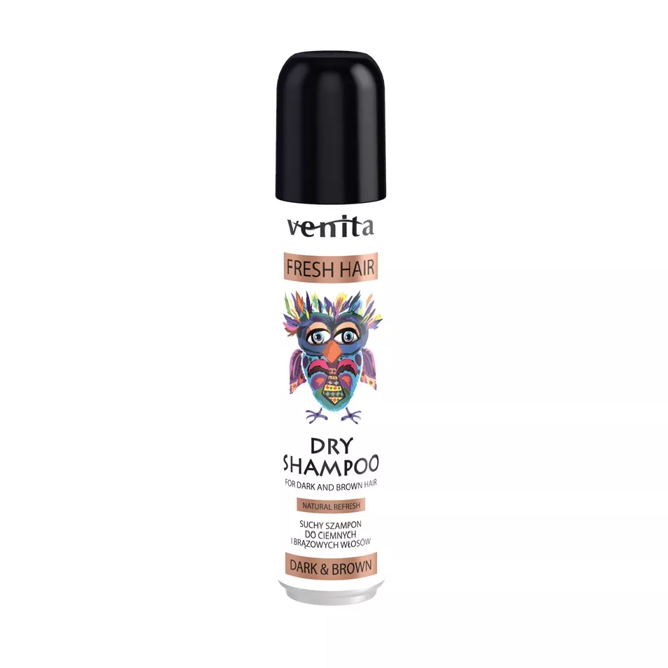 Venita Fresh Hair Dry Shampoo to suchy szampon w sprayu, który oferuje natychmiastowy efekt odświeżenia włosów. Idealny dla osób z ciemnymi i brązowymi włosami, którym zależy na szybkim i skutecznym odświeżeniu fryzury bez użycia wody.