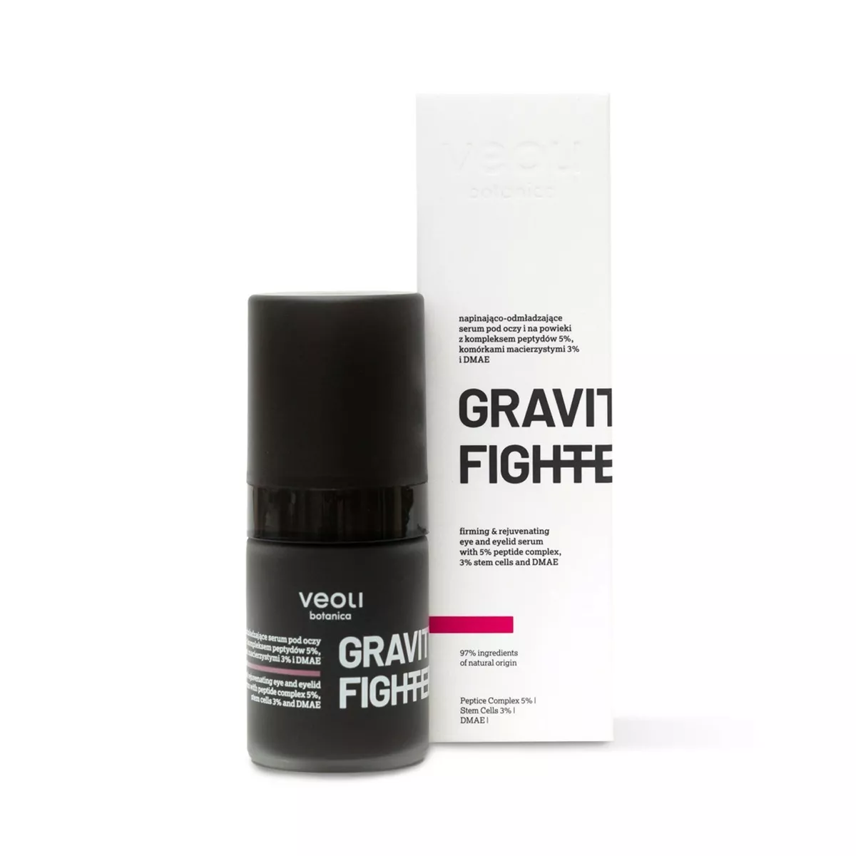 Veoli Botanica Gravity Fighter to zaawansowane serum napinająco-odmładzające, które zostało stworzone z myślą o delikatnej skórze wokół oczu i powiek. Dzięki zawartości kompleksu peptydów 5%, komórek macierzystych 3% oraz DMAE, serum skutecznie wygładza zmarszczki, redukuje oznaki zmęczenia i przywraca skórze jędrność oraz blask.