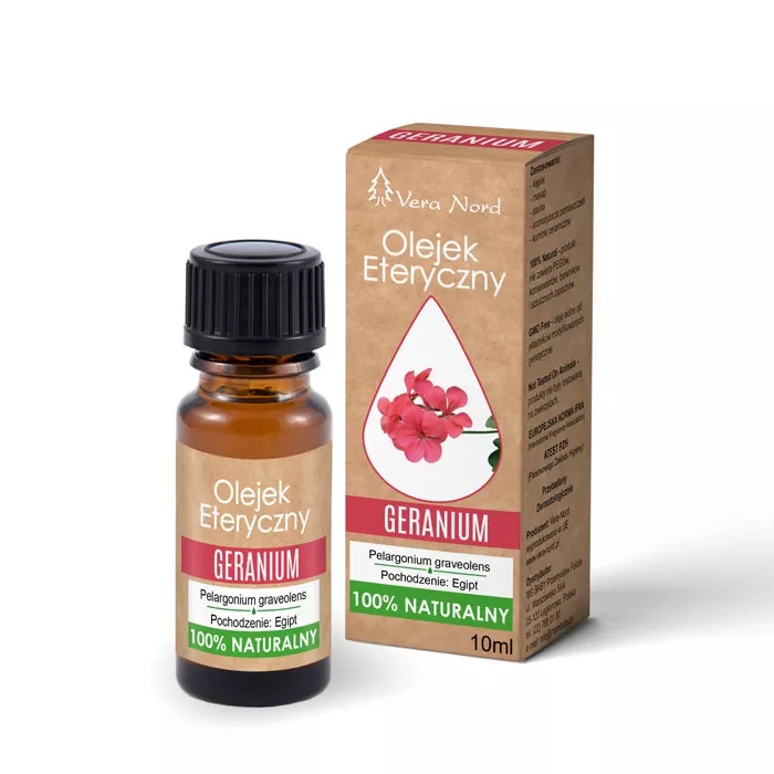 Naturalny olejek eteryczny Geranium od Vera Nord to doskonały wybór dla tych, którzy cenią sobie naturalne metody pielęgnacji skóry i relaksacji. Wyprodukowany z Pelargonium graveolens, ten olejek oferuje szereg korzyści zarówno dla zdrowia skóry, jak i dobrego samopoczucia.