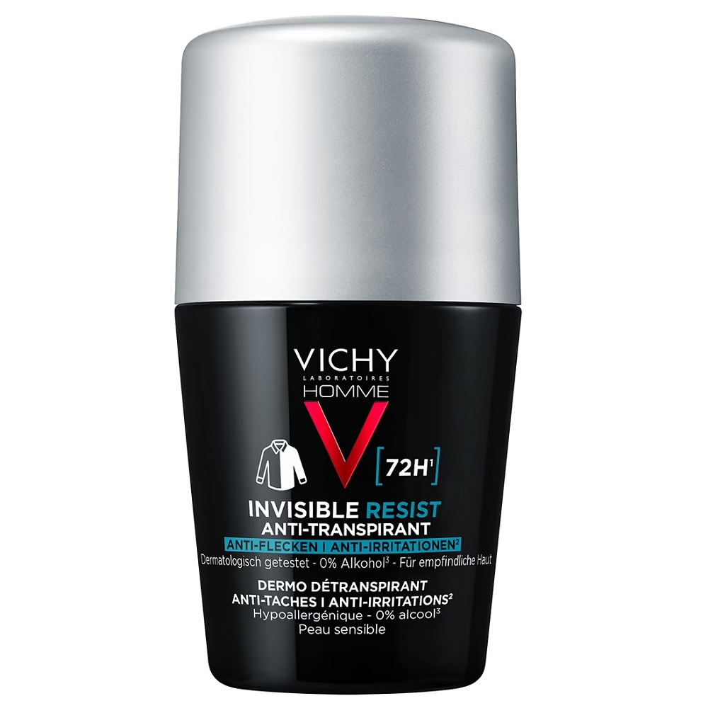 Odkryj długotrwałe działanie antyperspiracyjne z Vichy Homme Invisible Resist 72h. Ten antyperspirant w kulce został stworzony z myślą o mężczyznach, którzy poszukują skutecznej ochrony przed poceniem i nie chcą martwić się o plamy na ubraniach. Dzięki specjalnie opracowanej formule, produkt nie pozostawia żółtych ani białych śladów, zapewniając jednocześnie komfort i świeżość przez 72 godziny.
