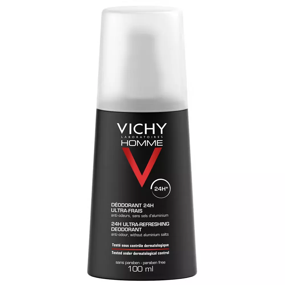 Vichy Homme Ultra-Fresh 24h dezodorant w sprayu to innowacyjne rozwiązanie dla mężczyzn, którzy pragną czuć się świeżo przez cały dzień. Dzięki działaniu antybakteryjnemu skutecznie neutralizuje nieprzyjemne zapachy, zapewniając komfort i pewność siebie przez 24 godziny.