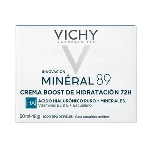 Vichy Mineral 89 Light to lekki krem nawilżająco-odbudowujący, który zapewnia aż 72 godziny nawilżenia. Codziennie nasza skóra jest wystawiona na działanie szkodliwych czynników zewnętrznych, co osłabia jej naturalną barierę ochronną. W rezultacie dochodzi do utraty wody, minerałów, lipidów, witamin i kwasu hialuronowego. Krem Mineral 89 Light dostarcza skórze niezbędnych składników, takich jak minerały, kwas hialuronowy, witaminy i skwalan, aby zapewnić jej długotrwałe nawilżenie i komfort.