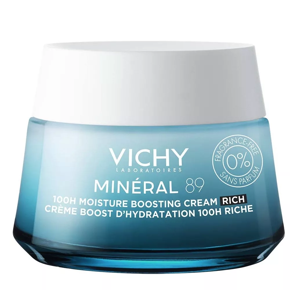 Skóra każdego dnia jest narażona na działanie szkodliwych czynników zewnętrznych: bariera skórna ulega osłabieniu, a codzienna utrata wody, minerałów i kwasu hialuronowego wzrasta. Dlatego niezwykle istotne jest dostarczenie skórze wszystkich potrzebnych jej składników. Krem Vichy Mineral 89 Rich to codzienna dawka minerałów, kwasu hialuronowego, witamin i skwalanu, które zapewniają długotrwałe nawilżenie skóry. Bogata, kremowa konsystencja kremu zapewnia komfort, jakiego potrzebuje sucha i odwodniona skóra.