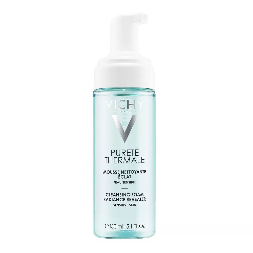 Vichy Purete Thermale oczyszczająca pianka przywracająca blask to ultralekka pianka do mycia twarzy, która delikatnie oczyszcza skórę, usuwając wszelkie zanieczyszczenia i resztki makijażu. Dzięki formule wzbogaconej wodą termalną, Captelae i naturalnym ekstraktem z shea, produkt przywraca skórze blask i świeżość. Płynna konsystencja zamienia się w przyjemną kremową, lekką pianę, pozostawiając skórę czystą, świeżą i promienną. Pianka została przetestowana pod kontrolą dermatologiczną, jest hipoalergiczna i nie zawiera parabenów.