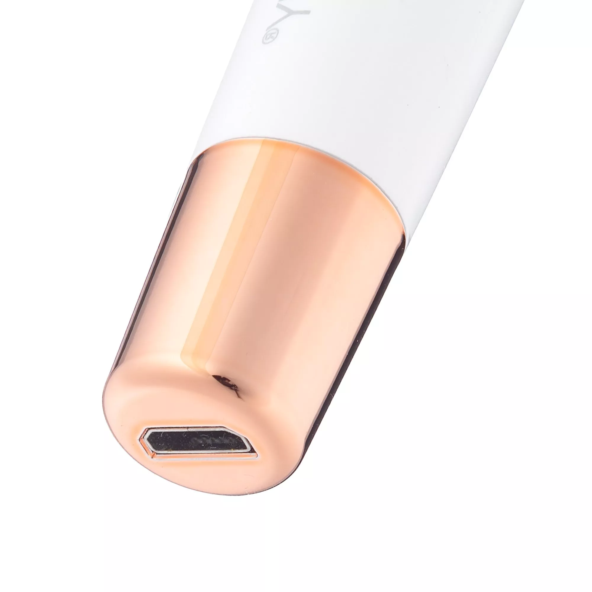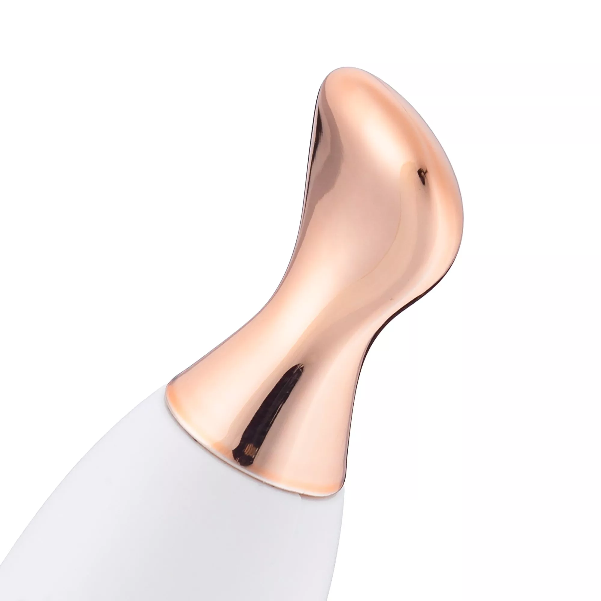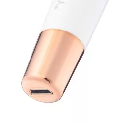 - Stylowy wygląd – elegancki biały kolor z akcentami w odcieniu różowego złota, ergonomiczny kształt i łukowata głowica dla komfortu użytkowania.