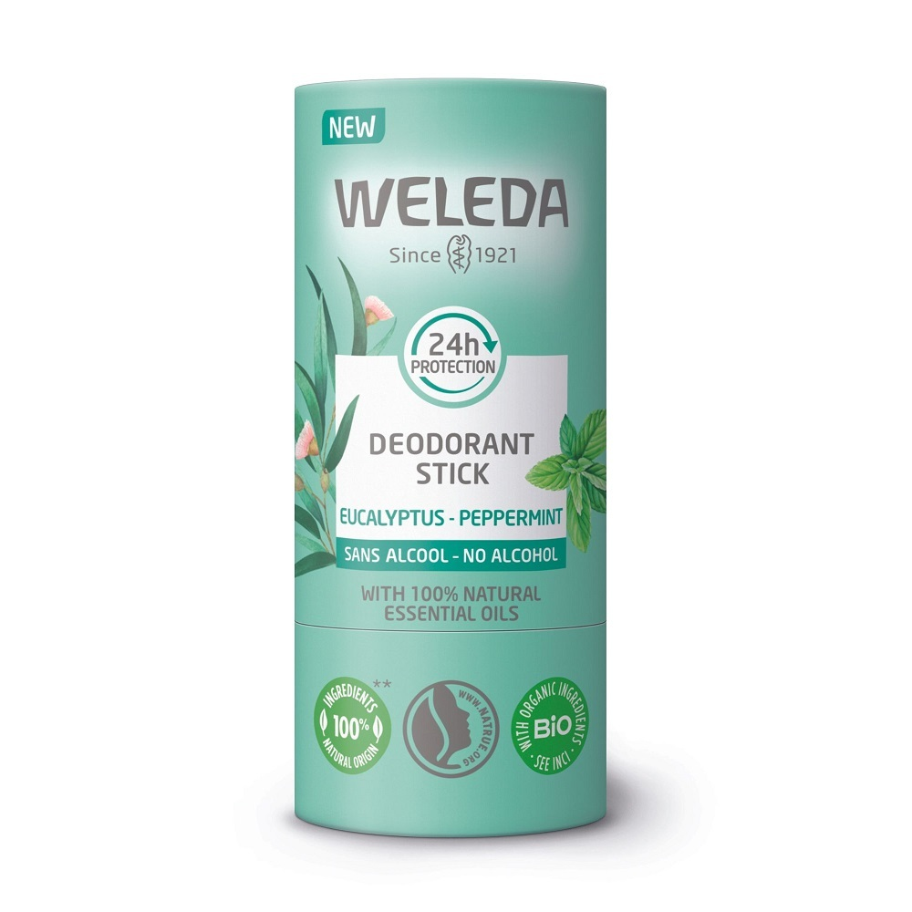 Weleda Dezodorant w sztyfcie eukaliptus-mięta pieprzowa to naturalny kosmetyk do codziennej pielęgnacji, który zapewnia skuteczną ochronę przed nieprzyjemnym zapachem nawet do 24 godzin. Oparty na 100% naturalnej formule, nie zawiera alkoholu, soli aluminium ani nanocząstek, dzięki czemu jest delikatny dla skóry – także tej świeżo wydepilowanej. Wegańska receptura oraz ekologiczne, kartonowe opakowanie sprawiają, że produkt jest nie tylko bezpieczny, ale także przyjazny dla środowiska. Orzeźwiający zapach eukaliptusa i mięty pieprzowej zapewnia długotrwałe uczucie świeżości i komfortu każdego dnia.