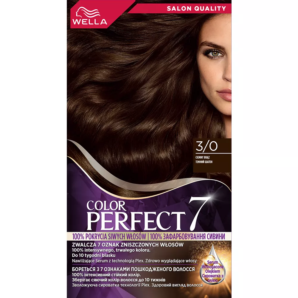 Odkryj nowy Wella Color Perfect 7 z technologią Plex. Ta wyjątkowa farba do włosów o odcieniu 3/0 ciemny brąz oferuje koloryzację o jakości salonowej, która zwalcza 7 oznak zniszczenia włosów. Zapewnia 100% intensywny, świetlisty i nawilżony kolor, dzięki czemu Twoje włosy będą wyglądały zdrowo i pięknie.