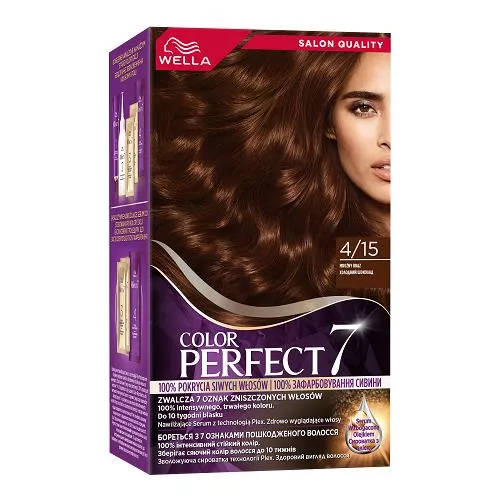 Odkryj nowy Wella Color Perfect 7, farbę do włosów w odcieniu 4/15 mroźny brąz. Ta farba do włosów o jakości salonowej wykorzystuje zaawansowaną technologię Plex, aby zwalczać 7 oznak zniszczenia włosów, zapewniając 100% intensywny, świetlisty i nawilżony kolor. Luksusowy olejkowy krem koloryzujący o kwiatowym zapachu nawilża i kontroluje uszkodzenia, zapewniając efekt salonowy w zaciszu domowym.