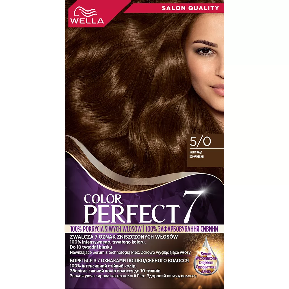Odkryj nowy Wella Color Perfect 7, farbę do włosów, w odcieniu 5/0 jasny brąz. Ta innowacyjna koloryzacja oferuje jakość, jaką znajdziesz w salonie fryzjerskim, dzięki technologii Plex, która skutecznie przeciwdziała 7 oznakom zniszczenia włosów. Ciesz się 100% intensywnym, świetlistym i nawilżonym kolorem, który dodaje blasku i życia Twoim włosom.