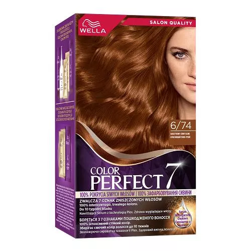 Odkryj nową farbę do włosów Wella Color Perfect 7 w odcieniu 6/74 bursztyn ciemny blond. Ta koloryzacja o jakości salonowej zwalcza 7 oznak zniszczenia włosów, zapewniając 100% intensywny, świetlisty i nawilżony kolor. Luksusowy olejkowy krem koloryzujący o kwiatowym zapachu nawilża i kontroluje uszkodzenia, oferując Ci zdrowo wyglądające włosy.