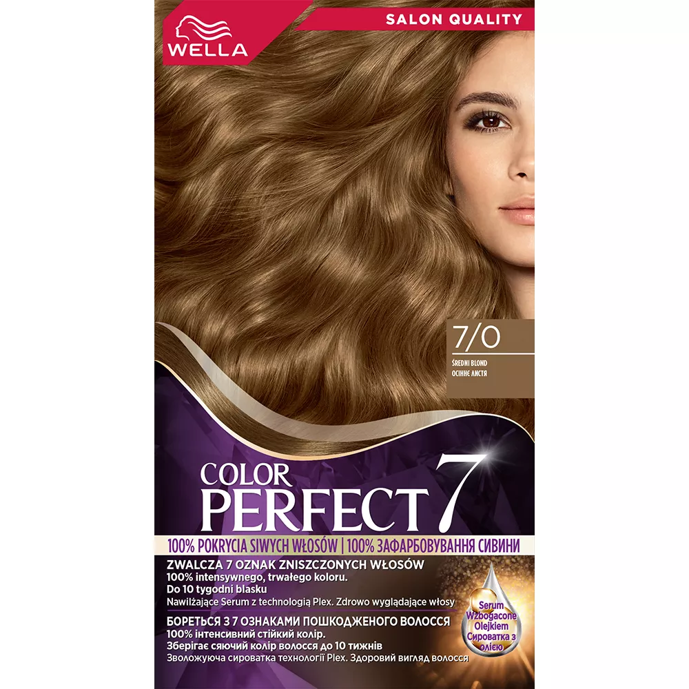 Odkryj nowy Wella Color Perfect 7, farbę do włosów o odcieniu 7/0 średni blond. Ta innowacyjna koloryzacja o jakości salonowej skutecznie zwalcza 7 oznak zniszczenia włosów, zapewniając 100% intensywny, świetlisty i nawilżony kolor. Luksusowy olejkowy krem koloryzujący o kwiatowym zapachu nie tylko nawilża, ale także kontroluje uszkodzenia, dzięki czemu Twoje włosy będą wyglądały zdrowo i pięknie.