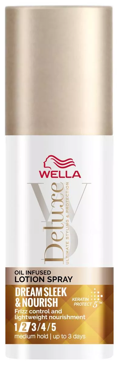 Wella Deluxe Dream Sleek & Nourish to nawilżający lotion w sprayu, który zapewnia naturalne utrwalenie oraz pełną objętości fryzurę bez obciążenia. Idealny dla włosów cienkich i normalnych, ten produkt jest nasycony mieszanką odżywczych olejków, w tym olejku kokosowego i z drzewa herbacianego. Zapewnia do 3 dni utrwalenia fryzury, skutecznie zapobiegając puszeniu i przesuszeniu włosów, jednocześnie gwarantując doskonałe nawilżenie.
